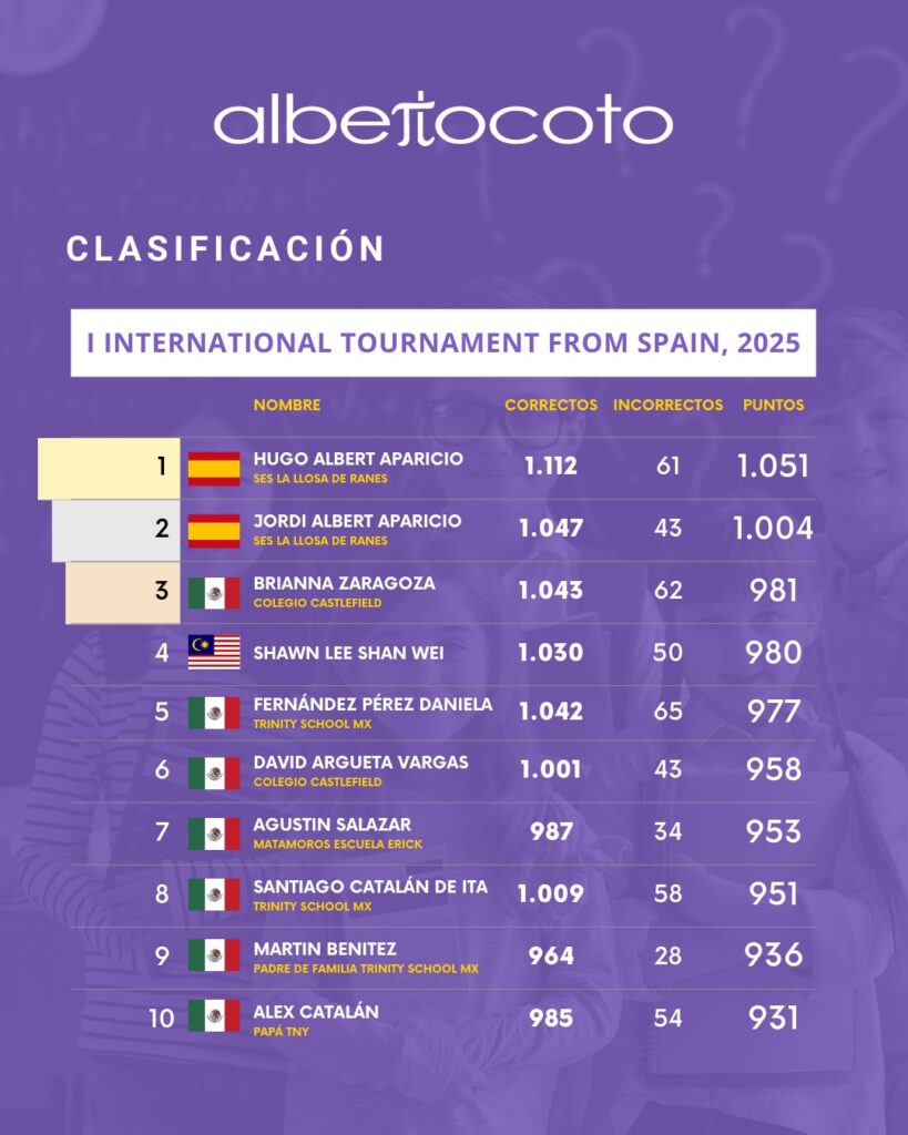 Este curso 2024-25 los alumnos de segundo, tercero y cuarto ESO han participado en el I INTERNATIONAL TOURNAMENT FROM SPAIN 2025 quedando dos alumnos de 4t ESO en las dos primeras posiciones :